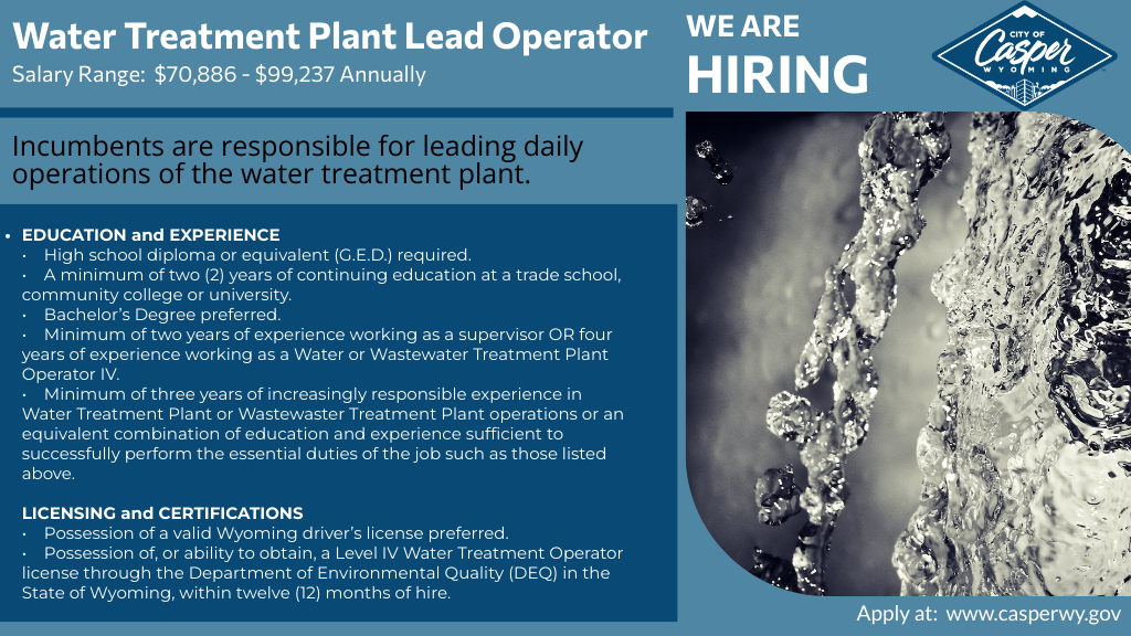 The City of Gillette is hiring! Join our team to ensure clean, safe water for our community.